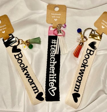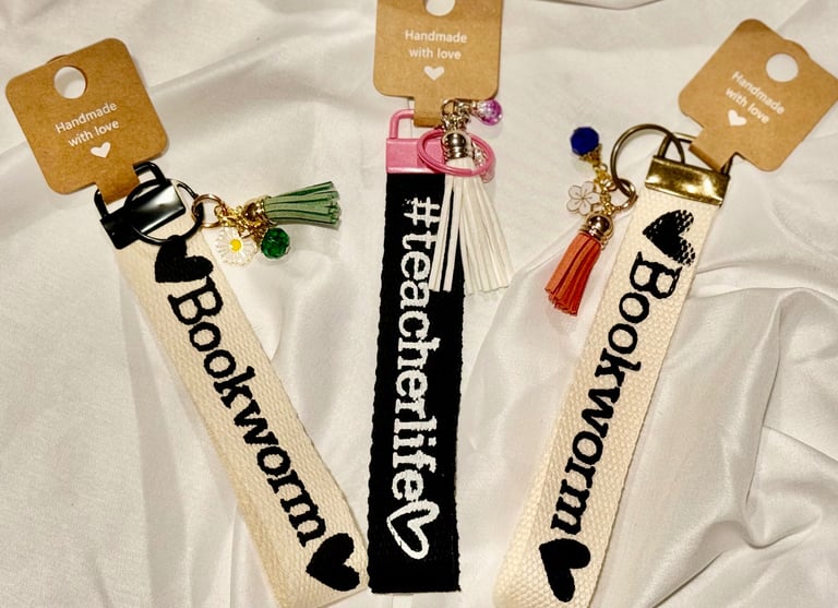 Bookmarks, keychains, wristlets and pouches